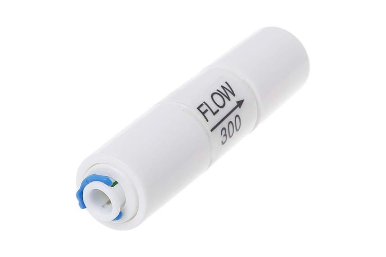 La membrana de ósmosis es el corazón de tu equipo (y la pieza más cara). Para que funcione, necesita que una parte del agua se deseche al desagüe, arrastrando las impurezas. Esto lo controla una pequeña pieza llamada Restrictor de Flujo.