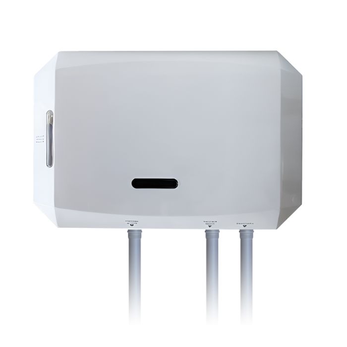 Compact and lightweight (42 × 31.5 × 9 cm and 2.5 kg), it easily fits any home. Its operation with water ≤ 35 °C and safe DC 12 V / 2.5 A power makes it a practical, sustainable system designed for families who want a healthier, cleaner home free of chemicals.